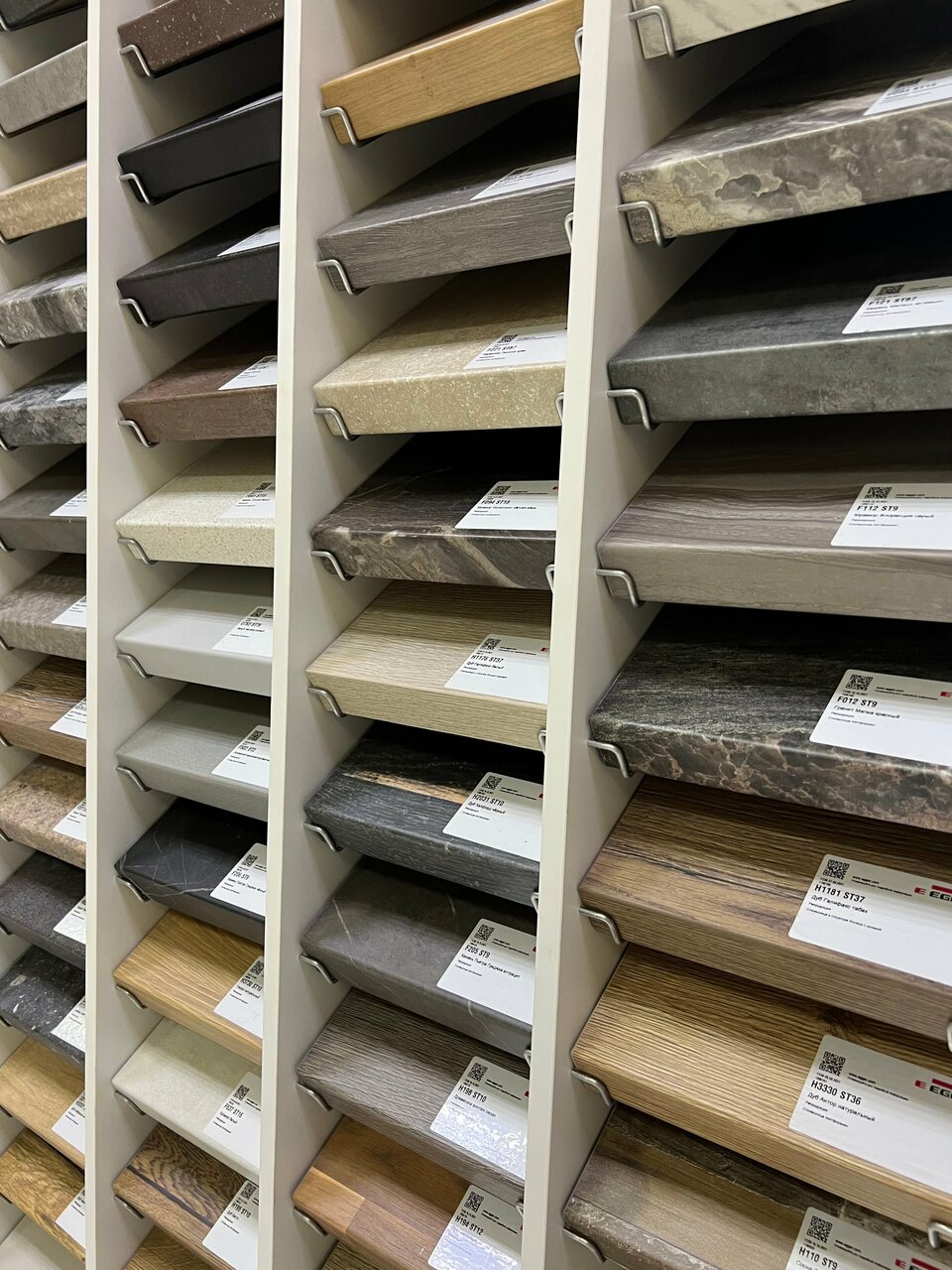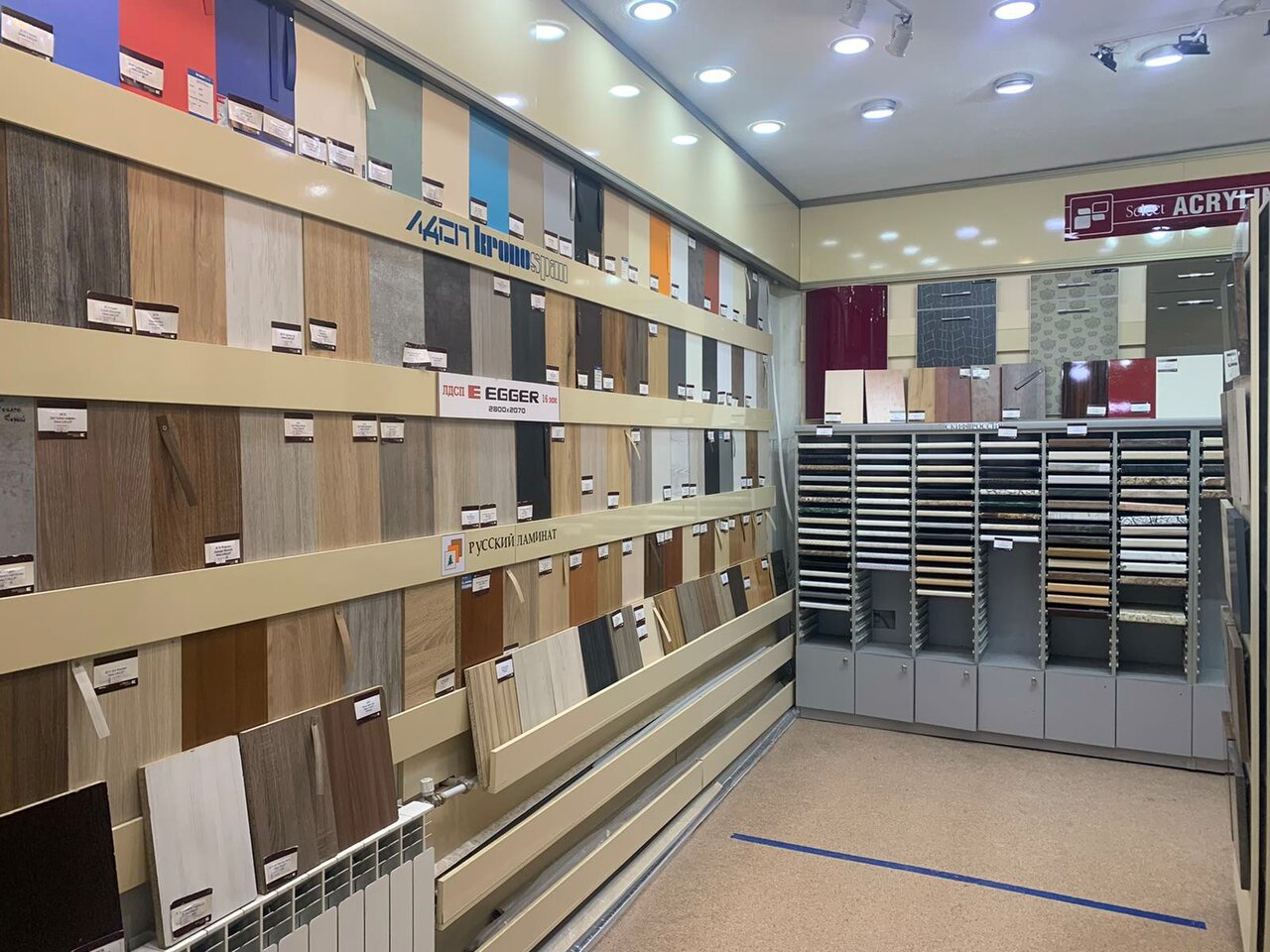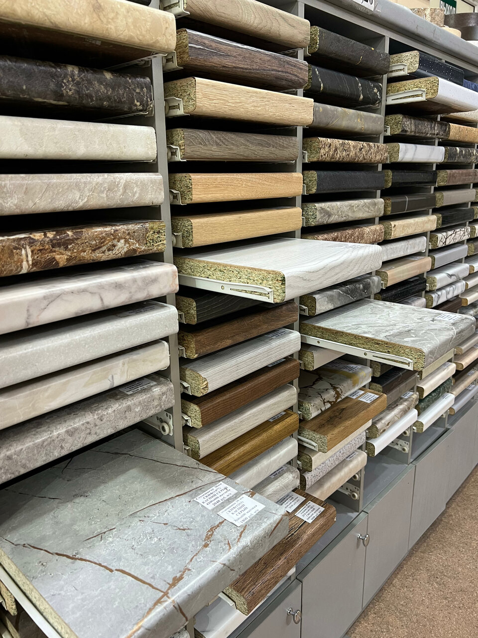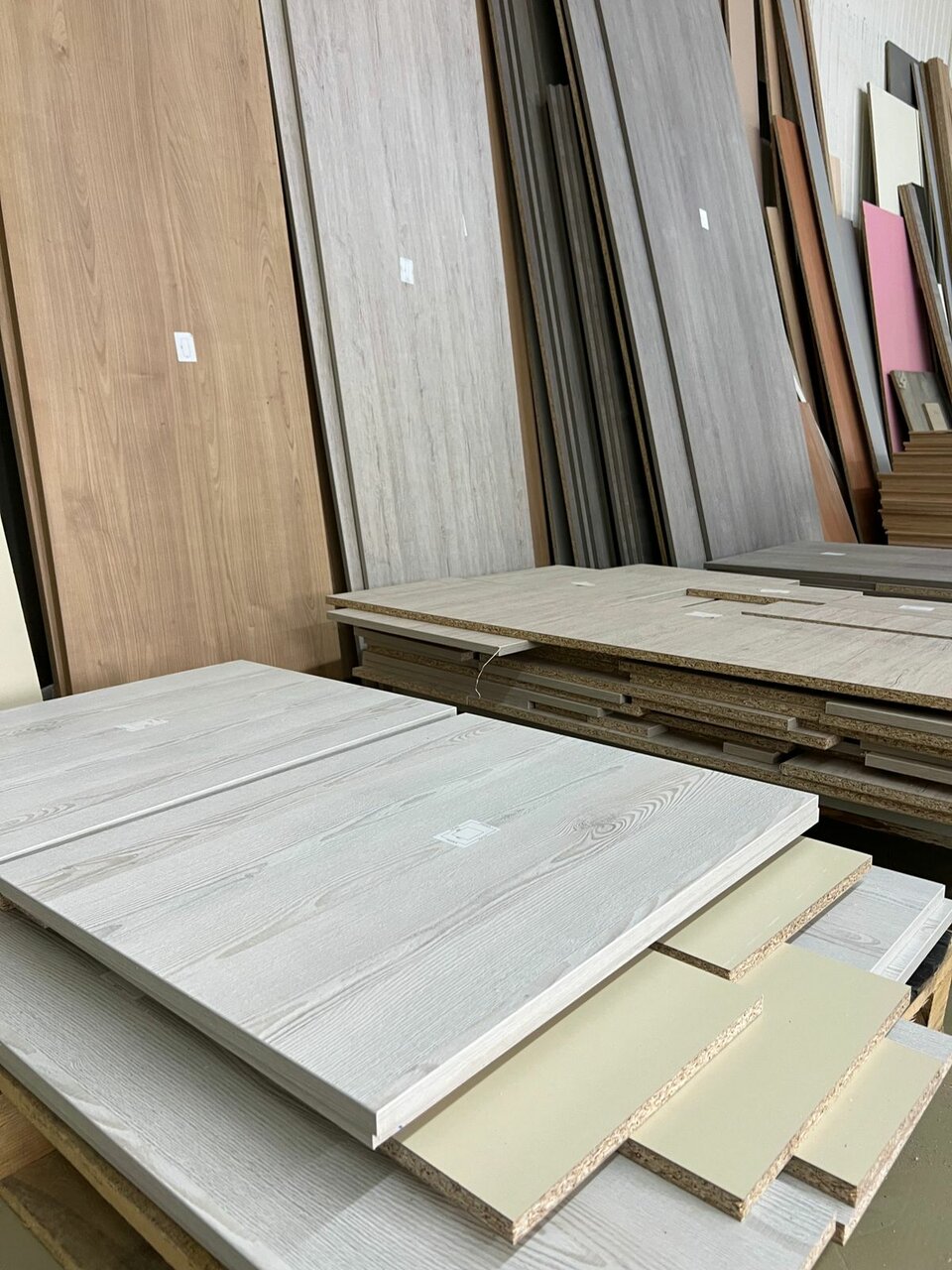 Хороший выбор ДСП и столешницы. Возможен распил.